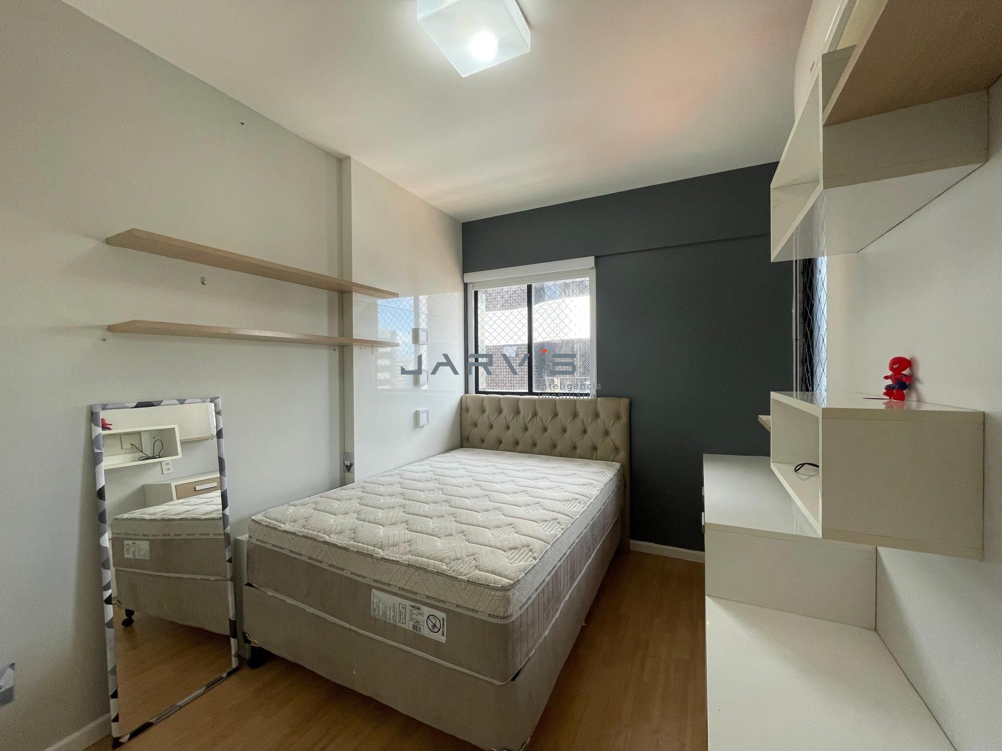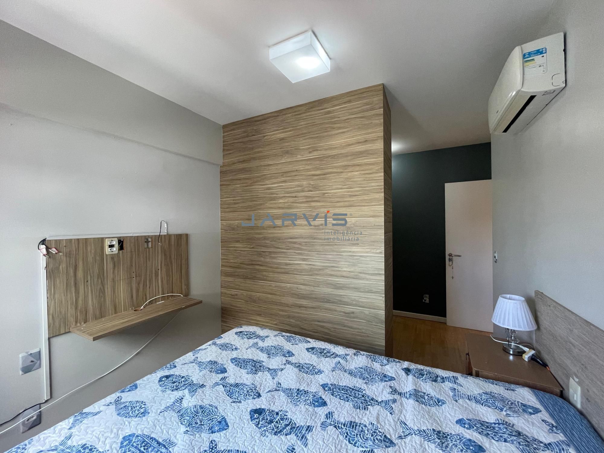 – Quarto principal com cabeceira estofada e móveis sob medida;