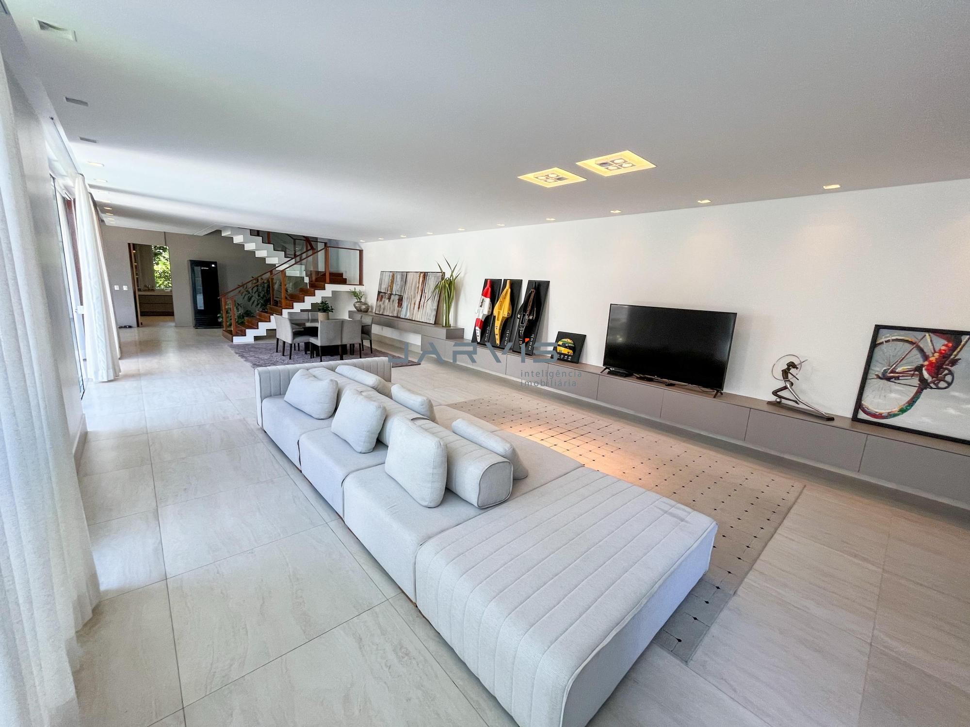 Com 765m² de área construída em um terreno de 905m², esta casa 100% nascente oferece uma vista espetacular para a lagoa. Projeto moderno com pé-direito duplo, claraboias, ventilação e luz natural em todos os ambientes.