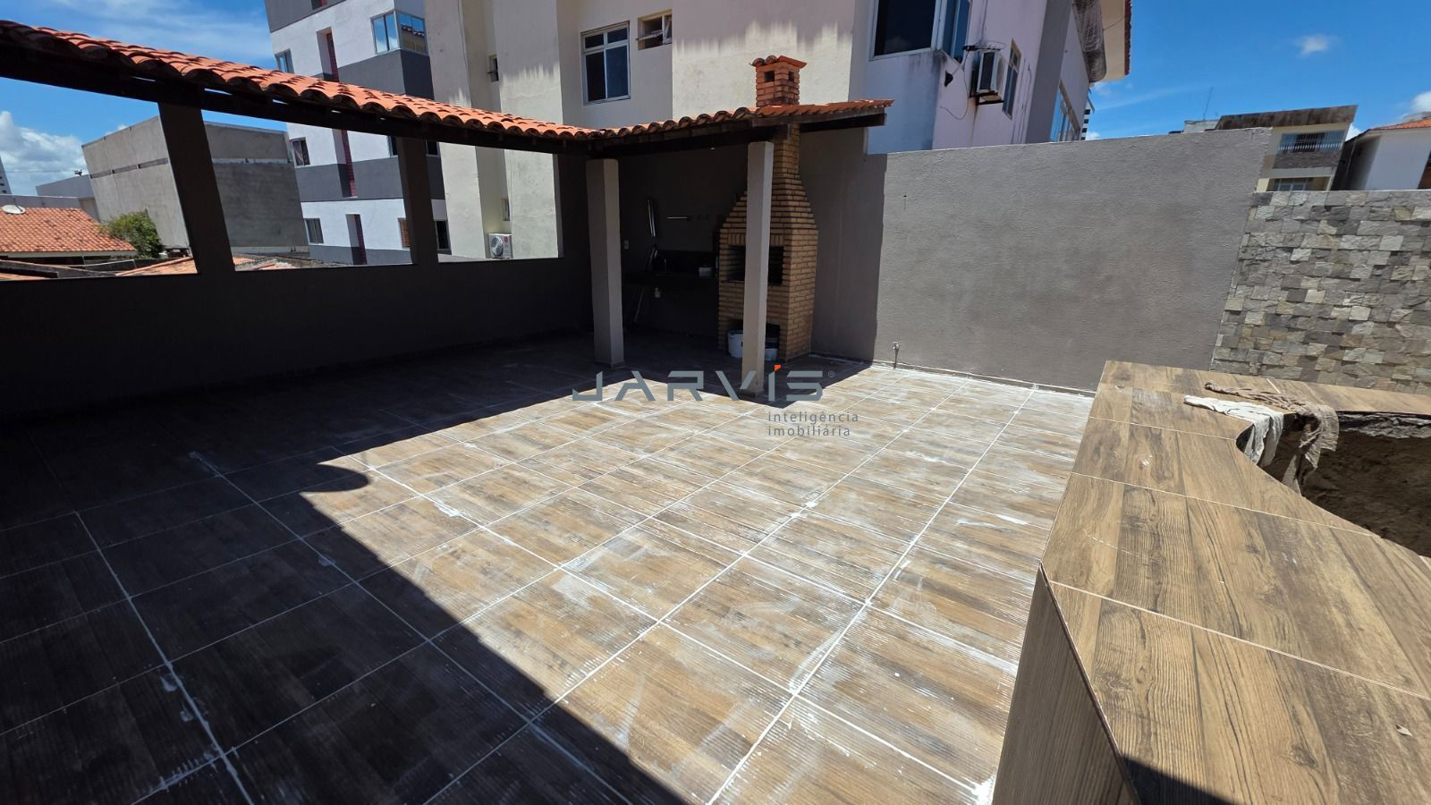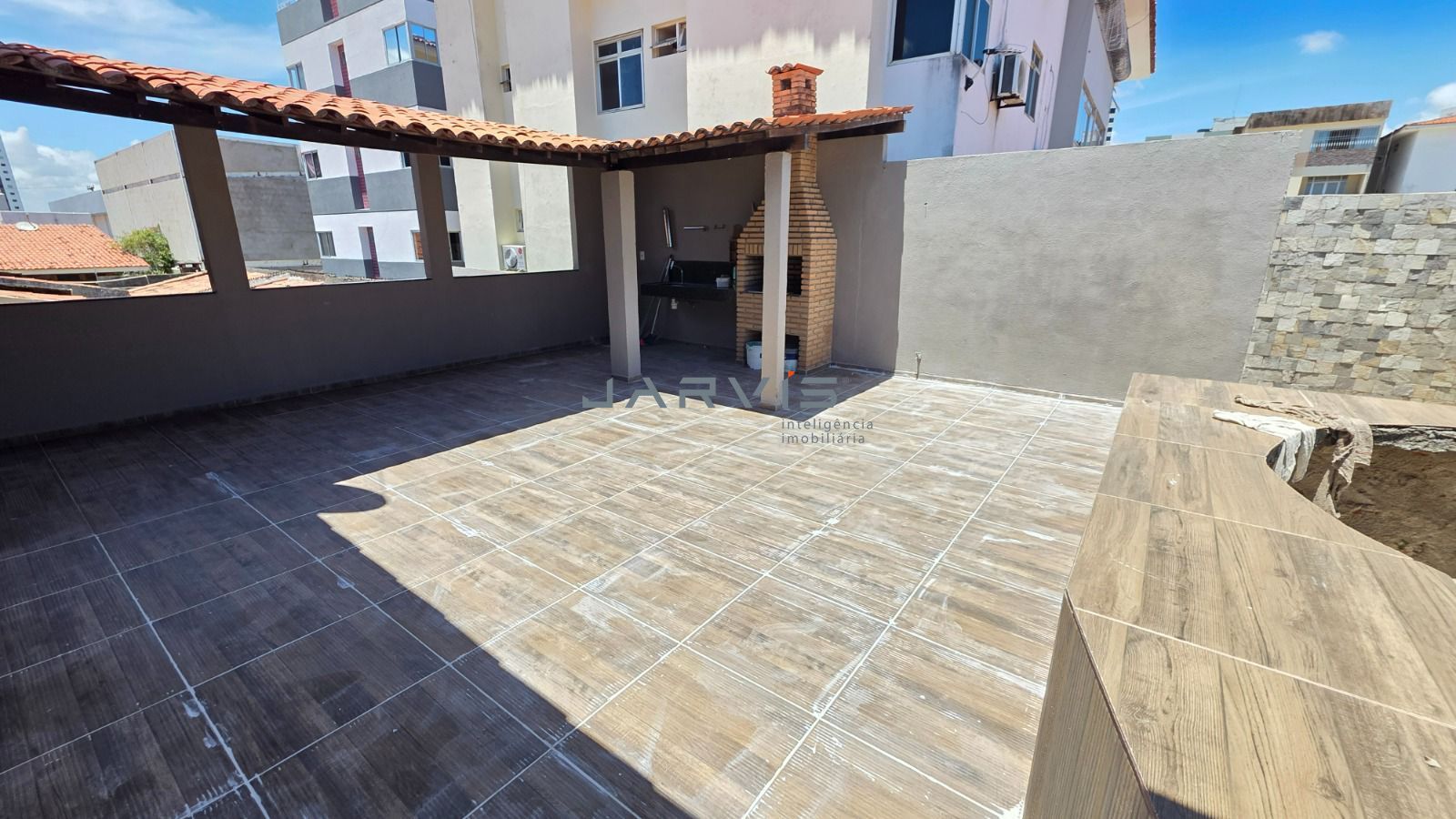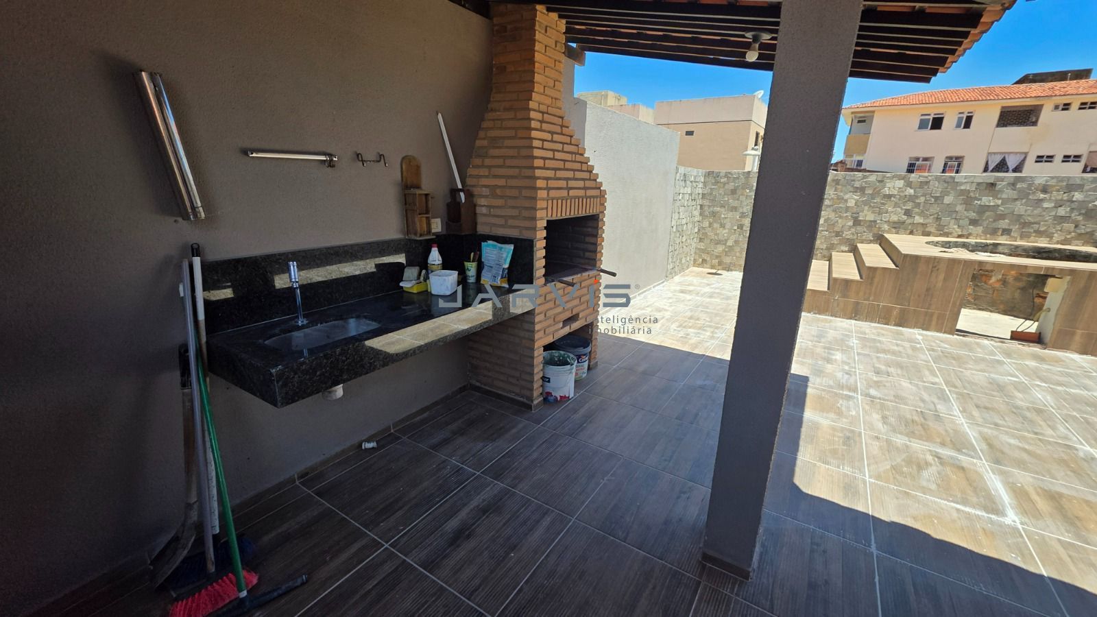 Área gourmet no piso superior com churrasqueira