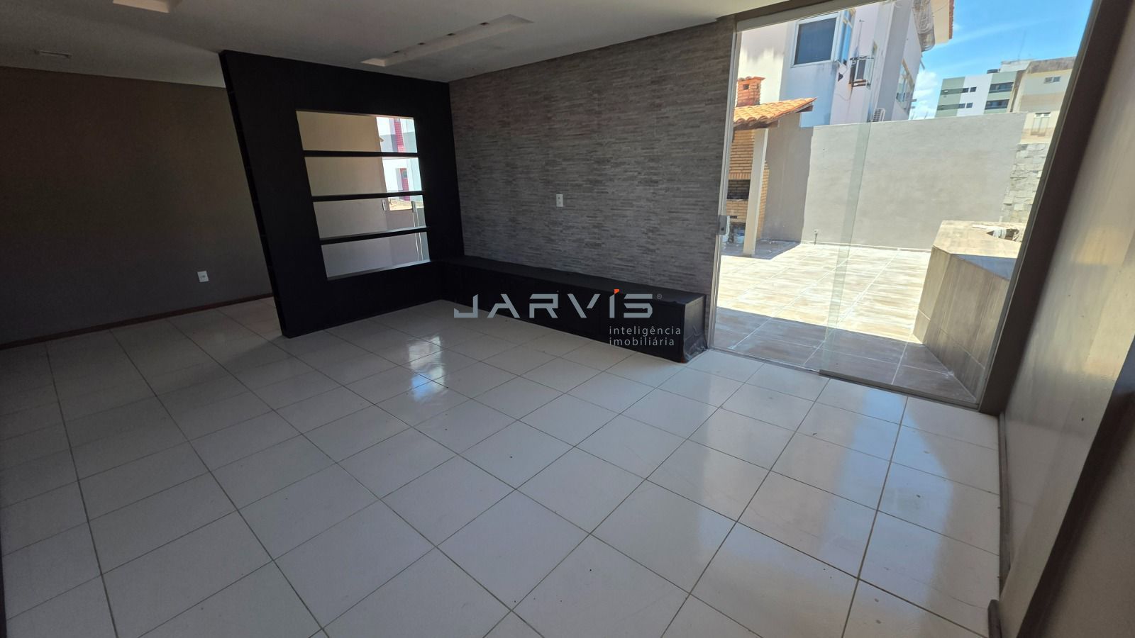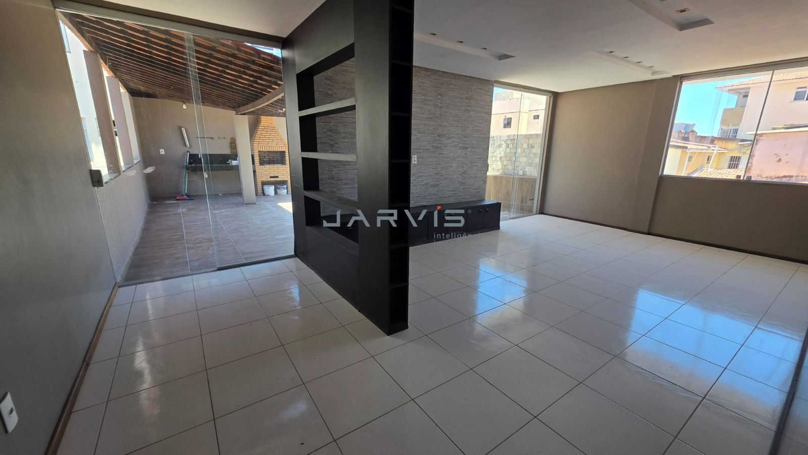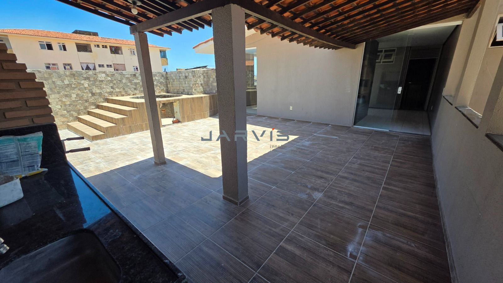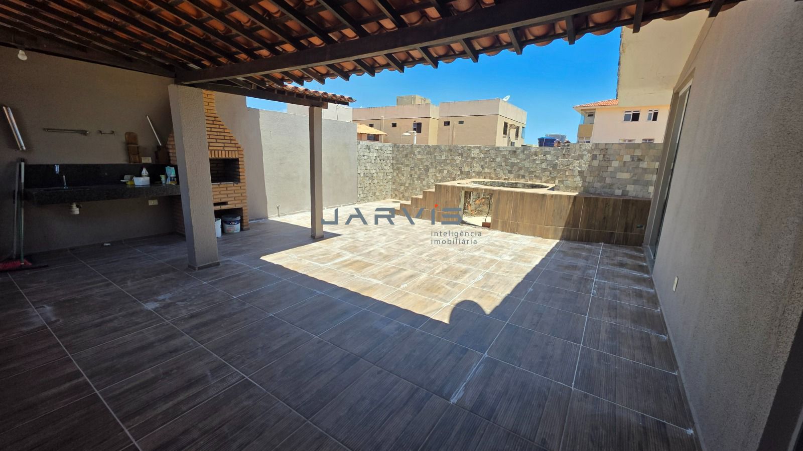 Área gourmet no piso superior com churrasqueira