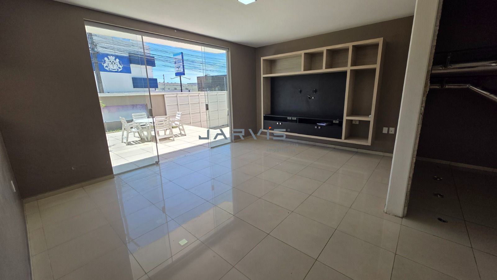 Sala de estar e TV integradas, bem ventiladas